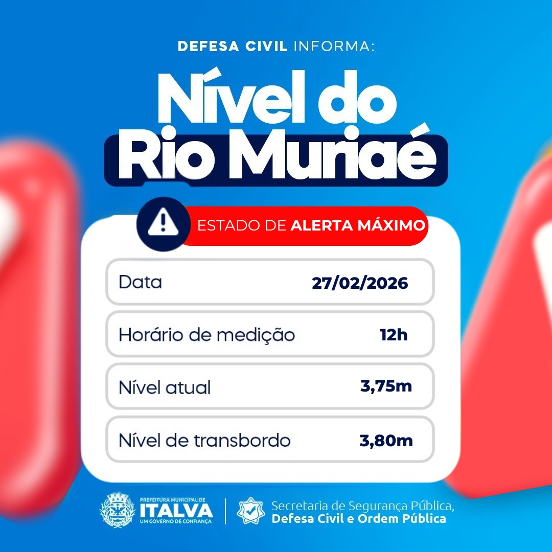 - NÍVEL DO RIO MURIAÉ EM ITALVA ATUALIZADO (14hs) 3,84m